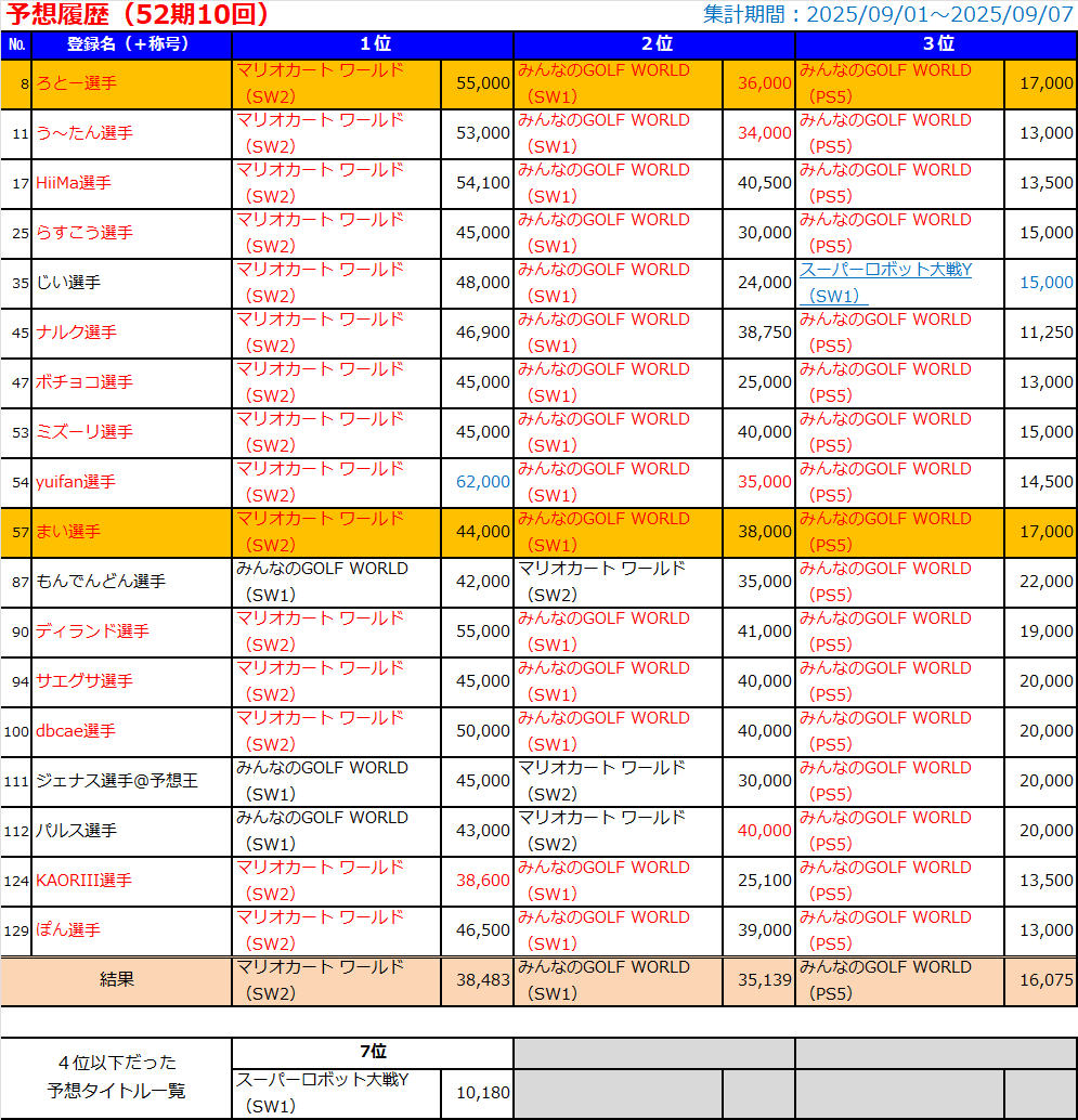 ※「今回のポイントランキング」および「次回の予想」は、ページ作成後にリンクが繋がります。